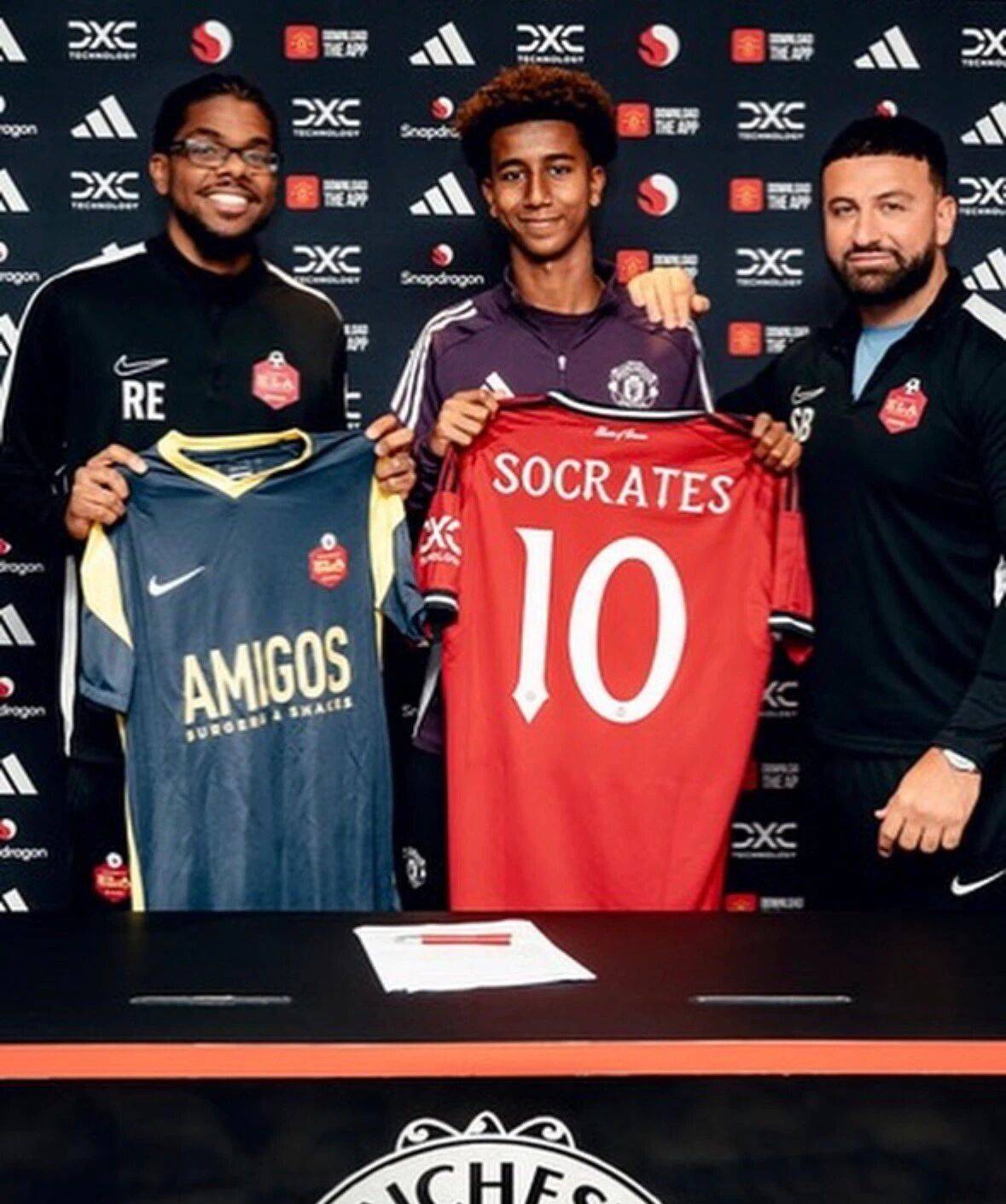 曼联官方宣布,已经签下英格兰U15国青球员苏格拉底(Socrates),他将加入俱乐部的青训体系。这是吉姆·拉特克里夫爵士收购红魔后,英力士管理团队引进的另一名年轻小将。